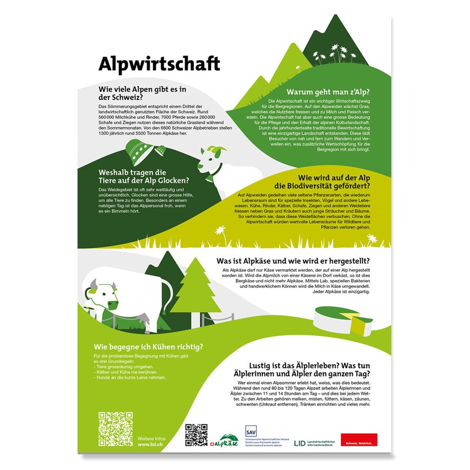 Wenn der Bauer oder die Bäuerin nicht gleich selbst Auskunft geben, erklären, erzählen kann, sind diese Informationstafeln praktisch. Mit ihren farbenfrohen und stilisierten Landschaften und ihren Bildelementen informieren sie den Leser. Sechs bis acht Fragen mit kurzen Antworten vermitteln einfach und verständlich die wichtigsten Informationen.