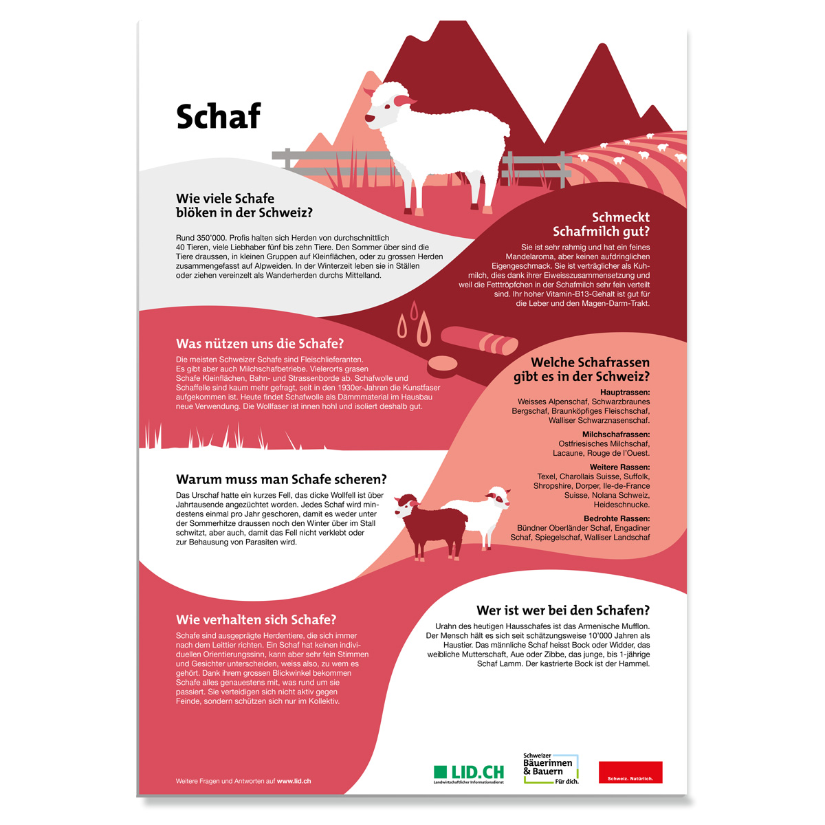 Wenn der Bauer oder die Bäuerin nicht gleich selbst Auskunft geben, erklären, erzählen kann, sind diese Informationstafeln praktisch. Mit ihren farbenfrohen und stilisierten Landschaften und ihren Bildelementen informieren sie den Leser. Sechs bis acht Fragen mit kurzen Antworten vermitteln einfach und verständlich die wichtigsten Informationen.