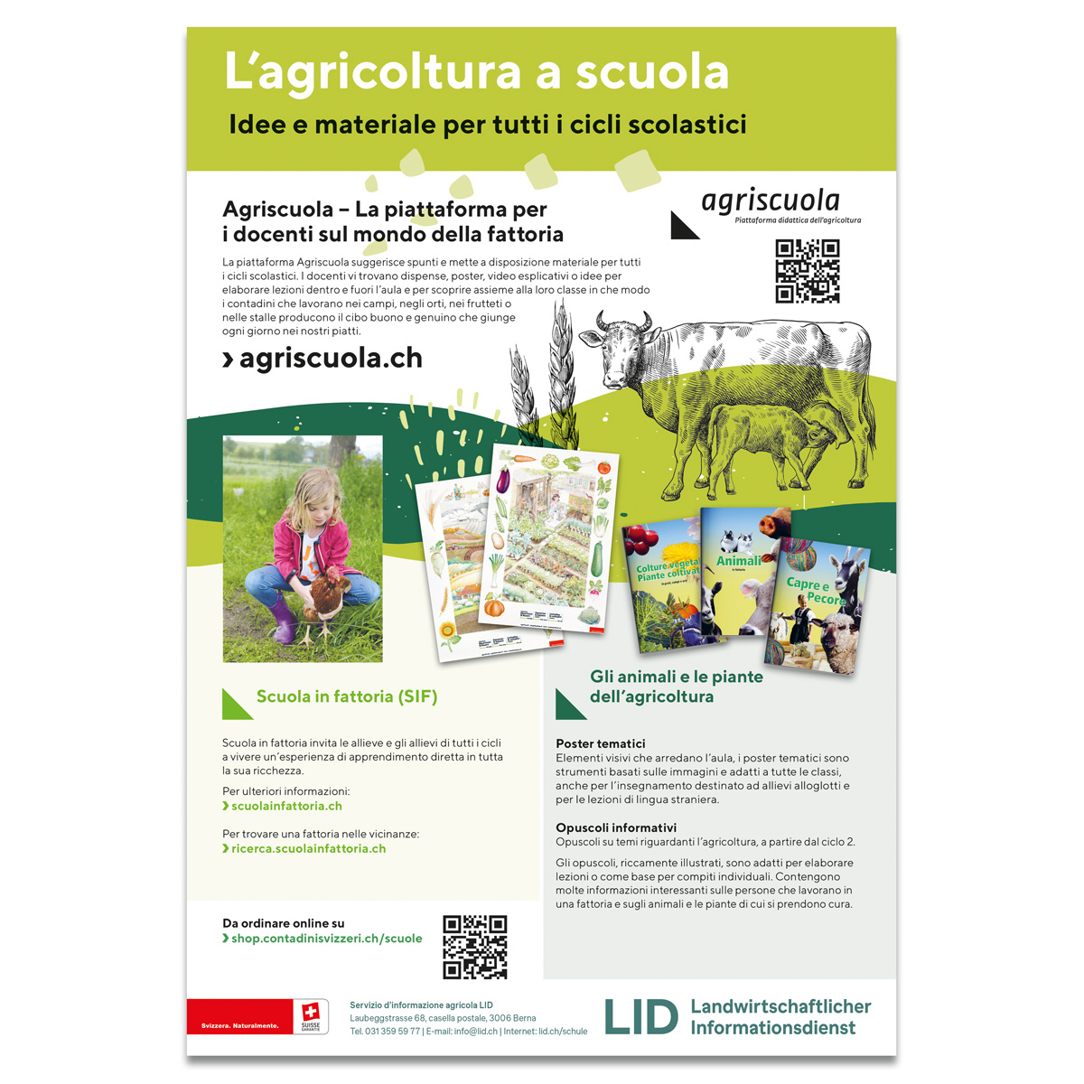 Volantino in formato A4 con una panoramica dell'offerta scolastica nell'agricoltura svizzera.